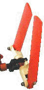 b.) Der Anstellwinkel der Heckrotorblätter muß auf null Grad gestellt werden. Dies funktioniert leider nicht mit allen Sendern und darf nicht verwendet werden, wenn man einen "HEADING LOCK KREISEL" verwendet. Die null Grad-position erkennt man am besten, in dem man die Heckrotorblätter zu einander klappt. Siehe Bild: Bei der Autorotation wird der dynamische Drehmomentausgleich grundsätzlich abgeschaltet. |